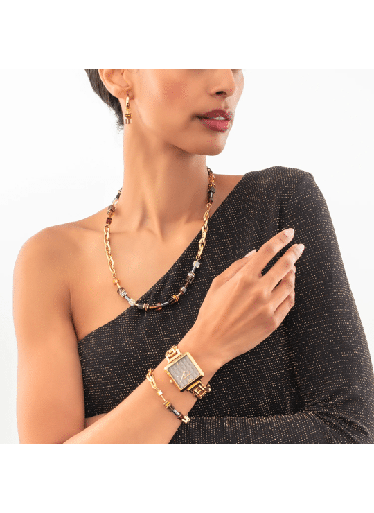 GeoCUBE® Chunky Chain Armband in Goudbruin - Asymmetrische Chic voor Trendsetters. De GeoCUBE® Chunky Chain Armband in goudbruin is de perfecte keuze voor iedereen die op zoek is naar een buitengewoon accessoire. Deze armband maakt indruk met zijn unieke asymmetrische look: de ene helft is voorzien van de iconische GeoCUBE®-reeks, een combinatie van kostbare kubussen in harmonieuze bruin- en goudtinten. De andere helft is voorzien van opvallende Chunky Navette Chain-elementen in verguld roestvrij staal, wat het ontwerp een moderne en krachtige uitstraling geeft. Deze armband is meer dan zomaar een sieraad - het is een statement dat je pols in de spotlight zet en elke outfit een speciaal tintje geeft. Of je hem nu alleen draagt of in combinatie met andere GeoCUBE®-sieraden, de Chunky Chain Armband benadrukt je individuele stijl en zorgt voor een look die zowel opmerkelijk als elegant is. Een must-have voor je collectie!