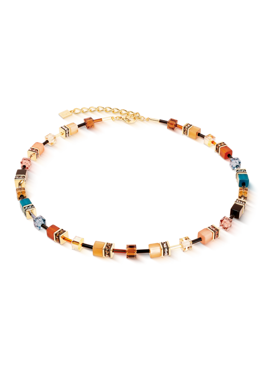 Een statement piece: de Earth Mirage ketting uit de GeoCUBE® Iconic-serie combineert aardse tinten met stralende accenten – krachtig, warm en tijdloos. De kenmerkende kubusvormen weerspiegelen het iconische COEUR DE LION-design. Verguld roestvrij staal, sprankelende kristallen en een betoverend samenspel van matte en gepolijste oppervlakken maken deze ketting tot een moderne klassieker.