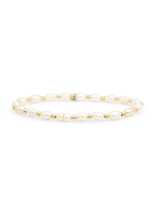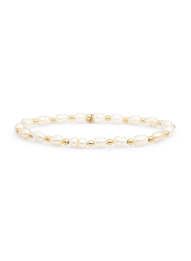 De Interstellar Armband Pearl Goud Kleurig is een harmonieuze combinatie van klassieke verfijning en eigentijdse flair. De parels zorgen voor een zachte, tijdloze glans, terwijl de goudkleurige kralen een moderne twist geven. Het resultaat is een armband die moeiteloos aansluit bij verschillende stijlen – van zakelijk tot feestelijk. De armband voelt licht aan en draagt comfortabel de hele dag door. Draag haar solo voor een subtiele elegante look of mix met andere armbanden voor een gelaagde polsstijl vol persoonlijkheid. Deze armband is ideaal voor vrouwen die houden van sieraden met betekenis, maar ook gevoel voor mode hebben. Een klassiek ontwerp, opnieuw geïnterpreteerd voor de vrouw van nu. Verfijnd, veelzijdig en met een warme glans die je elke dag laat stralen.