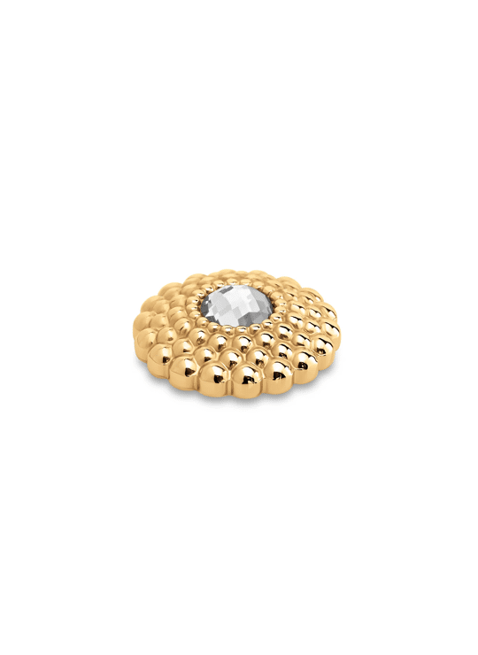 De Melano Kosmic Bubbly Flower steen is sierlijk en fleurig. Deze bloem is namelijk opgebouwd door diverse bolletjes voor een speelse touch. De Bubbly Flower steen heeft een doorsnede van 22 mm en is verkrijgbaar in een zilver- of goudkleurige plating.