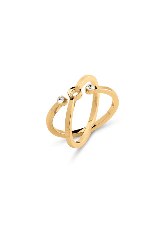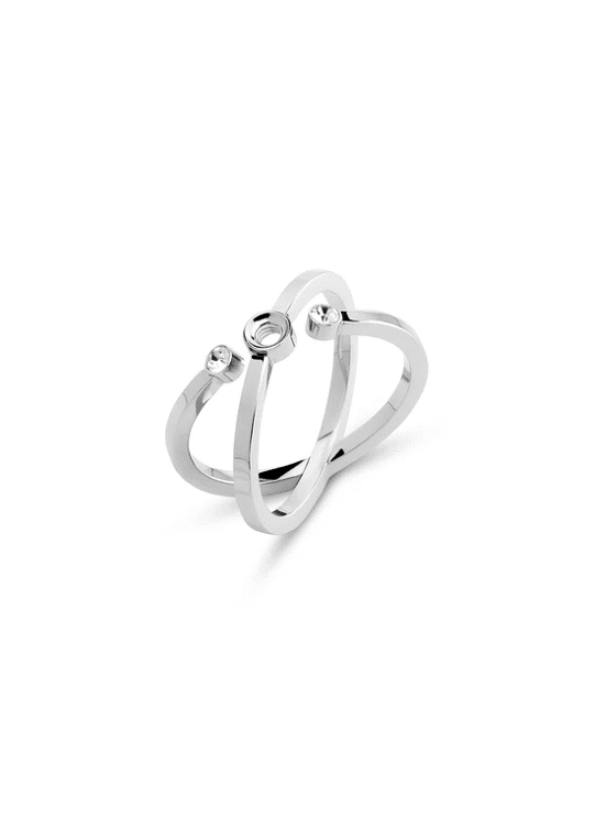 De Melano Twisted Tron ring is een verrassend nieuw design met een dubbele ringband. De schroefdraad wordt vergezeld door twee kleine kristalkleurige zirkonia steentjes voor een extra dosis sparkles. De Tron ring is 12 mm breed en is verkrijgbaar in een zilver-, rose goud- of goudkleurige plating.