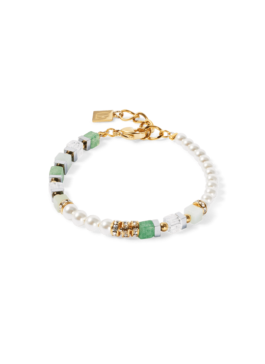 Natuurlijk mooi, speels elegant – de Precious Fusion Offset goudgroene armband combineert de stralende groene tinten van amazoniet, groene aventurijn en bergkristal met de zacht glinsterende witte Swarovski®-parels. Verguld roestvrijstalen details voegen een vleugje verfijning toe, terwijl het geraffineerde offset-ontwerp de armband een moderne, lichte uitstraling geeft. De perfecte accessoire voor stijlvolle looks met een vleugje natuur.