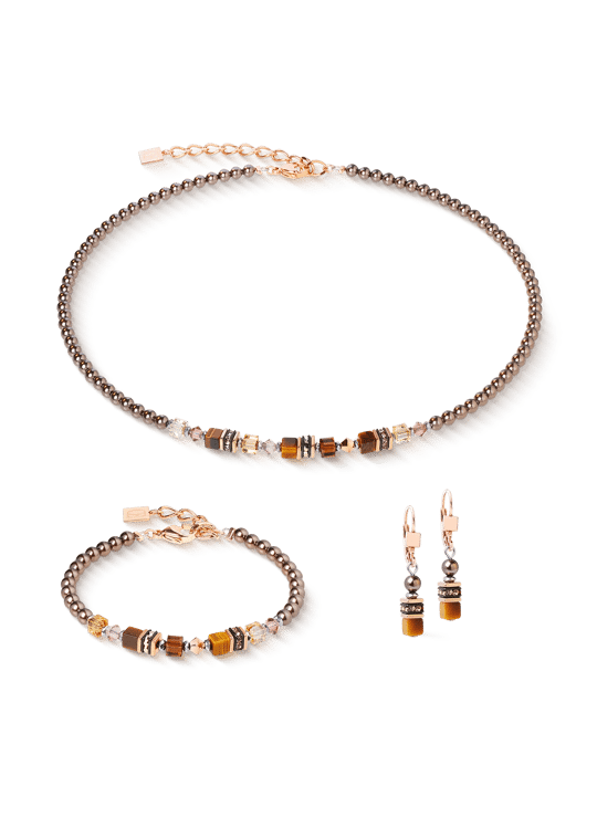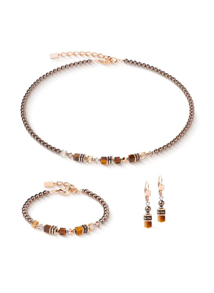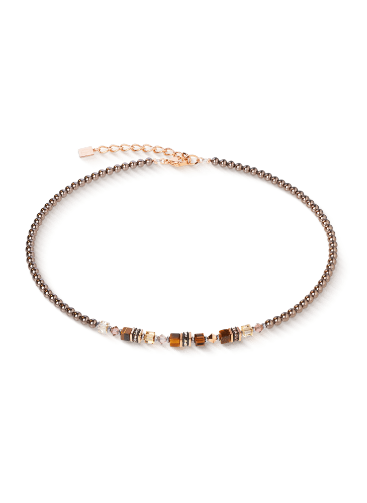 Warme bruintinten, glinsterend roségoud en een vleugje aarde en licht: de Princess Earth Glow-ketting combineert krachtige elegantie met natuurlijke materialen. Tijgeroog, kostbare Swarovski®-kristallen en zacht fonkelende kristalparels creëren een harmonieus kleurenspel dat doet denken aan de gloed van een ondergaande zon. Het ontwerp imponeert met zijn verfijning en prachtige details – perfect om alleen of in laagjes te dragen.
