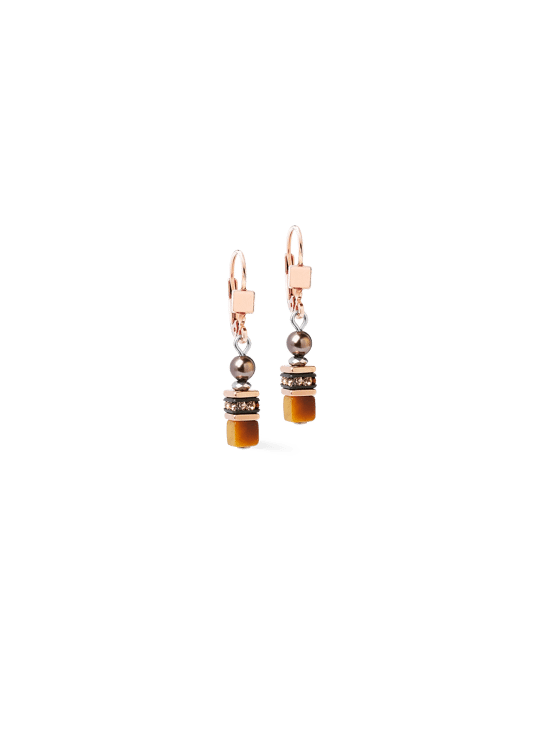 Met hun zachte kleuren en strakke lijnen voegen deze oorbellen een subtiele en verfijnde touch toe. De combinatie van tijgeroog, sprankelende kristallen en roségoudkleurig roestvrij staal zorgt voor een tijdloze look met een vleugje glamour. Zowel licht als expressief, zijn ze perfect om een outfit stijlvol af te maken of om solo te schitteren.