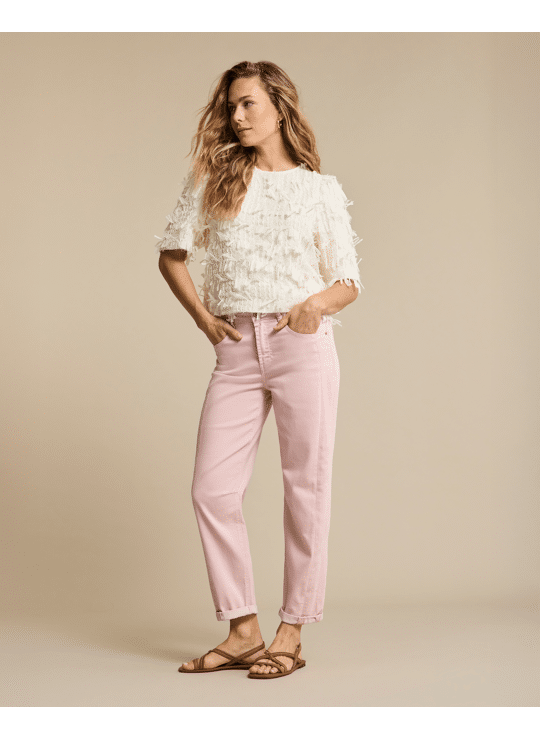 Pasvorm: hoge taille - iets losser - rechte pijpen