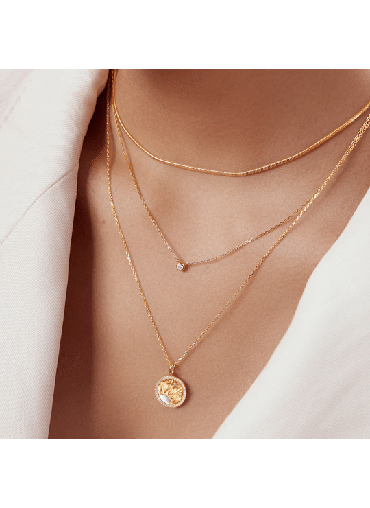 Een stijlvolle klassieker om toe te voegen aan je dagelijkse sieradencollectie. Deze ketting is gemaakt van gerhodineerd goud en sterling zilver met een ronde zirkonia in een bezelzetting. Combineer hem met andere kettingen of draag hem alleen, je zult je dagelijkse stijl zeker opfrissen.