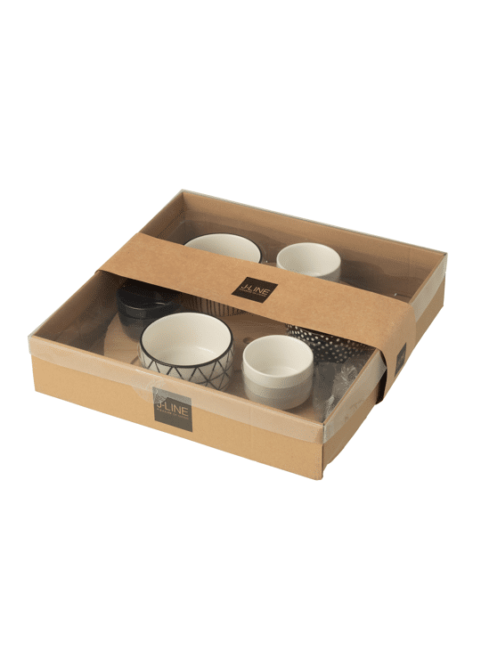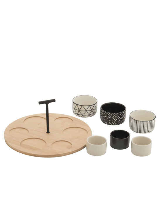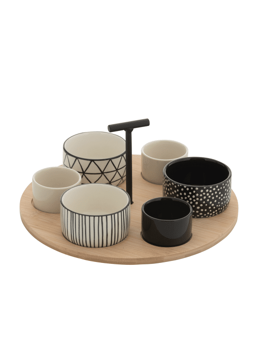 - Product: Tapasservies 6 Sets + Bambouschaal In Doos Zwart/Wit (53830)