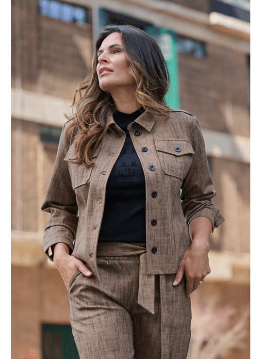 Jacket Milou Camel van Zoso is een modern jasje in een warmecameltint. Het is een korte model met kraag, knoopsluiting en klepzakken.Dankzij de subtiele schouderdetails en het structuureffect in de stof krijgtdit item een eigentijdse en stoere uitstraling.