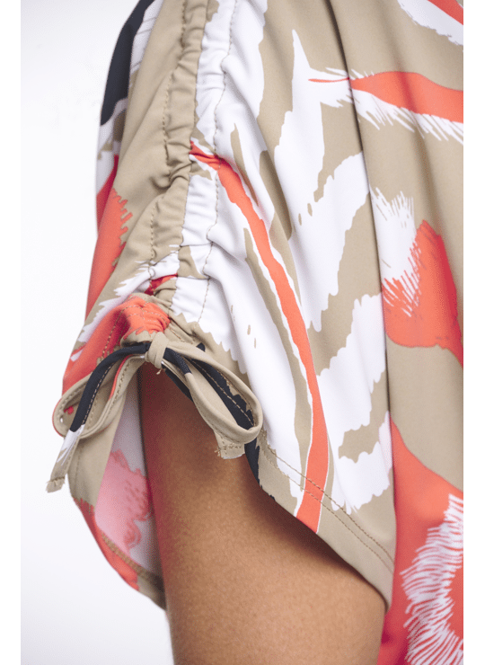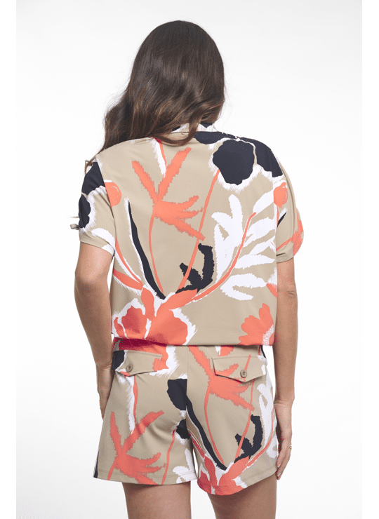 Georgina is een blouse met een frisse bloemprint. De stof van polyamide met elastan draagt prettig, voelt soepel aan en geeft net genoeg rek voor een comfortabele pasvorm. Door de lichte, vrolijke kleurencombinatie oogt de blouse verzorgd en net even anders, zonder te druk te worden. Een fijne keuze voor momenten waarop je iets kleurrijks wilt dragen en toch graag comfort houdt.